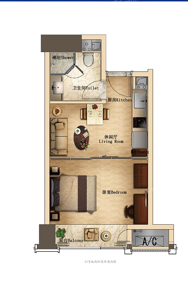 克拉B户型-1室1厅1卫1厨建筑面积38.00平米