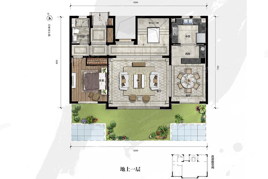 地上一层-5室3厅4卫1厨建筑面积225.00平米