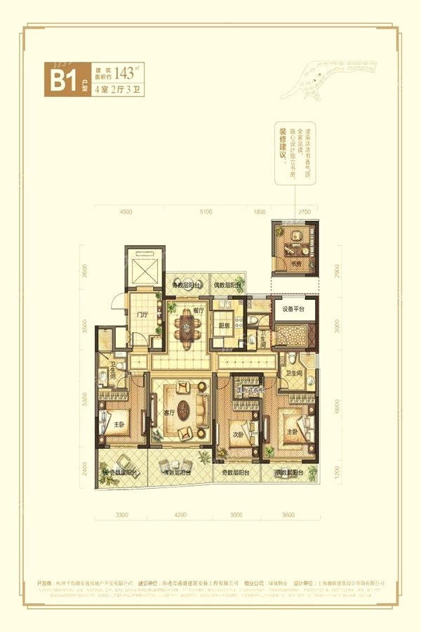 4居143-4室2厅3卫1厨建筑面积143.00平米