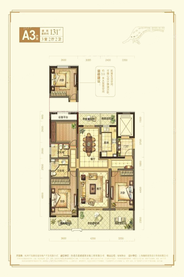 3居131-3室2厅2卫1厨建筑面积131.00平米