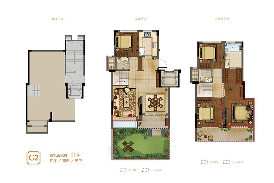 洋房G2户型-4室2厅2卫1厨建筑面积115.00平米