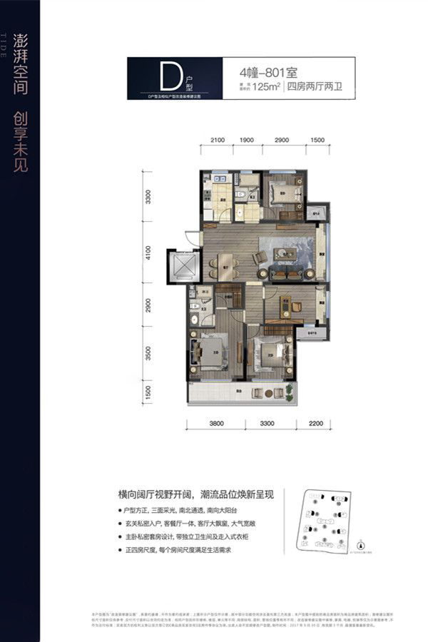 D户型-4室2厅2卫1厨建筑面积125.00平米