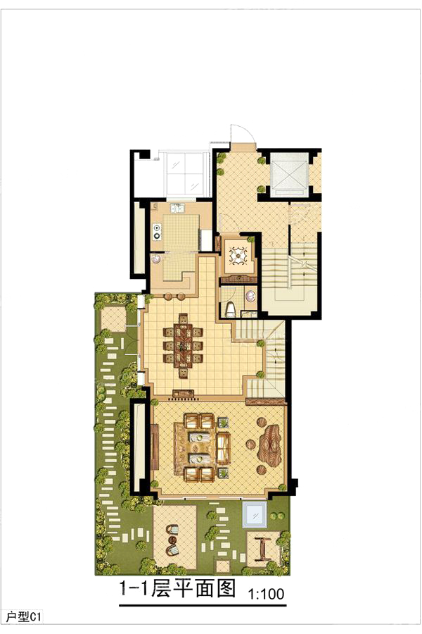 C1-1户型-4室3厅3卫1厨建筑面积225.00平米