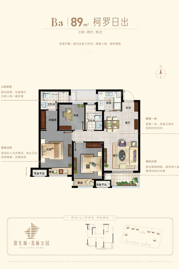 B3户型-3室2厅2卫1厨建筑面积89.00平米