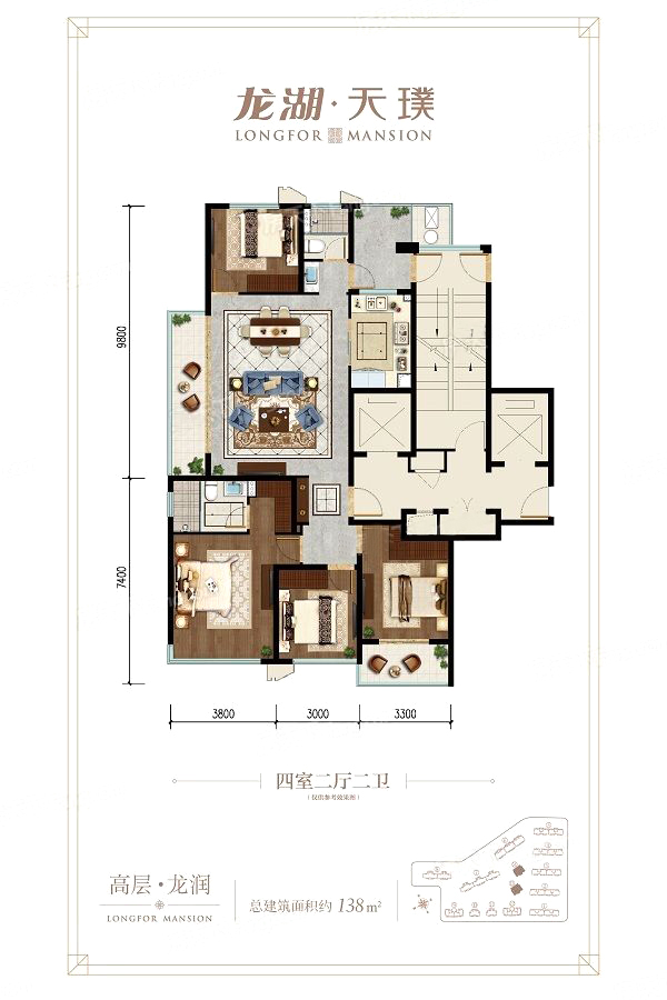 高层·龙泽6#楼138方-4室2厅2卫1厨建筑面积138.00平米