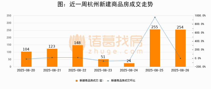 【杭州成交日报】08月26日新房成交254套、二手房169套;涨价房源25套