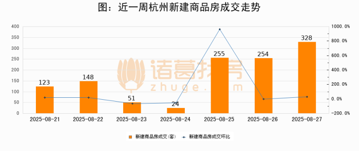 【杭州成交日报】08月27日新房成交328套、二手房215套;涨价房源24套