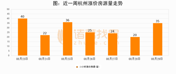 根据诸葛找房数据显示,杭州24小时涨价房源量为35套,较08月28日增加15套,环比上涨75%。与此同时,涨价房源占比小幅扩大,业主信心有所提升。