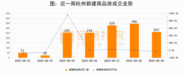 【杭州成交日报】08月29日新房成交263套、二手房172套;涨价房源35套