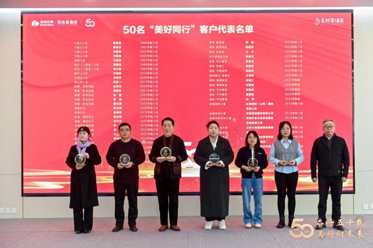 大会还展播了《相伴五十载,美好共前行:绿地泉50年“美好同行”代表访谈录》,并向历时6个月推荐评选出的50位员工代表、50个合作伙伴代表及50名客户代表颁发“美好同行”荣誉证章。三个“50”,三位一体,共同凝聚成绿地泉事业发展的磅礴力量。这一幕,充分彰显了“携手同心”的理念,也为企业的未来发展注入了深厚而坚定的人心根基。
