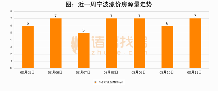 根据诸葛找房数据显示,宁波24小时涨价房源量为7套,较08月10日增加1套,环比上涨16.7%。与此同时,涨价房源占比小幅扩大,业主信心有所提升。
