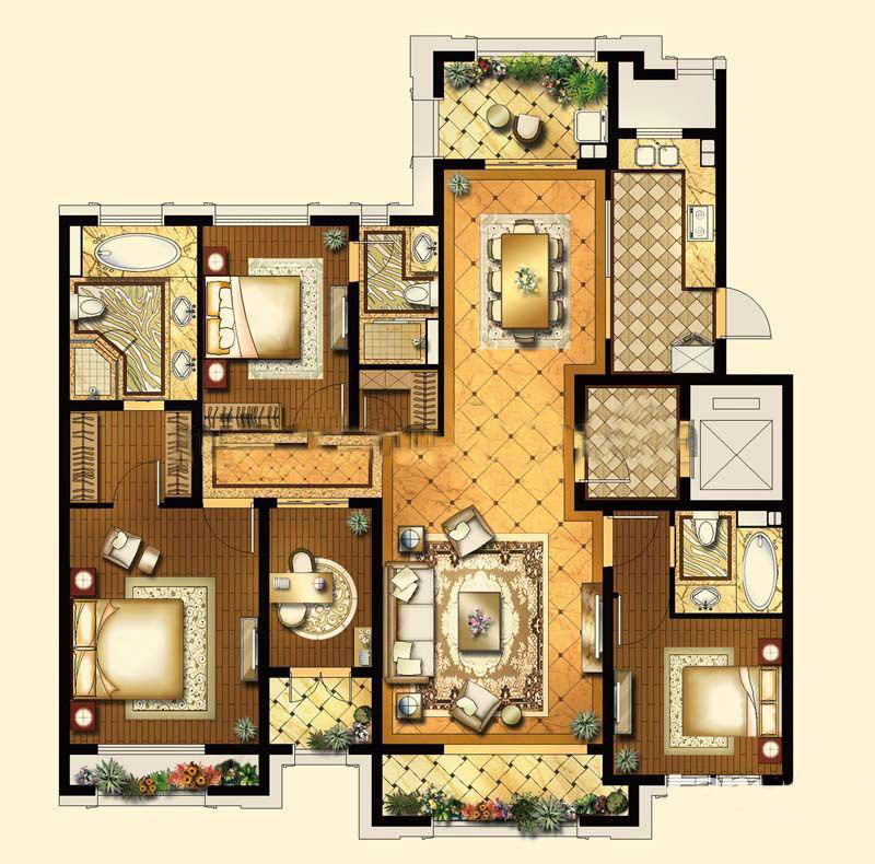 一期1、2、5、7、8#标准层C11户型-4室2厅3卫1厨建筑面积170.00平米