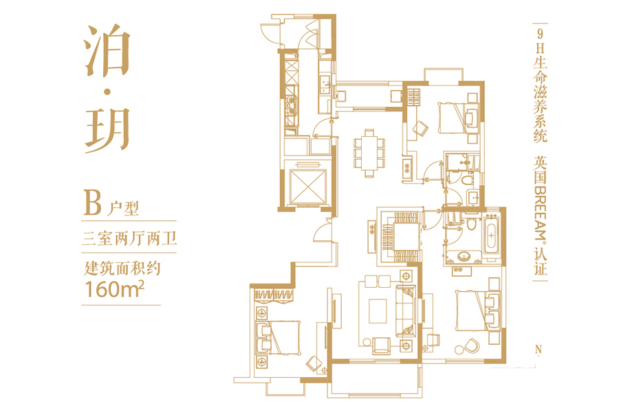 一期8#标准层泊·玥B户型-一期8#标准层泊·玥B户型-3室2厅2卫1厨建筑面积160.00平米
