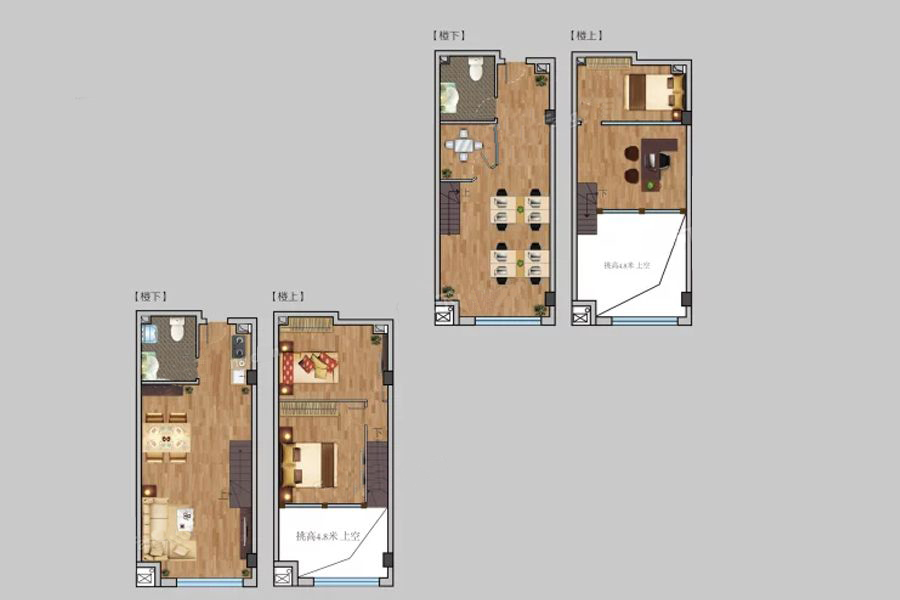 挑高B户型-2室1厅1卫1厨建筑面积51.00平米