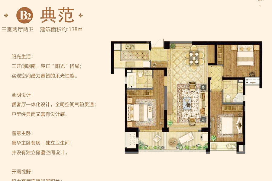 揽江府B2典范-3室2厅2卫1厨建筑面积138.00平米