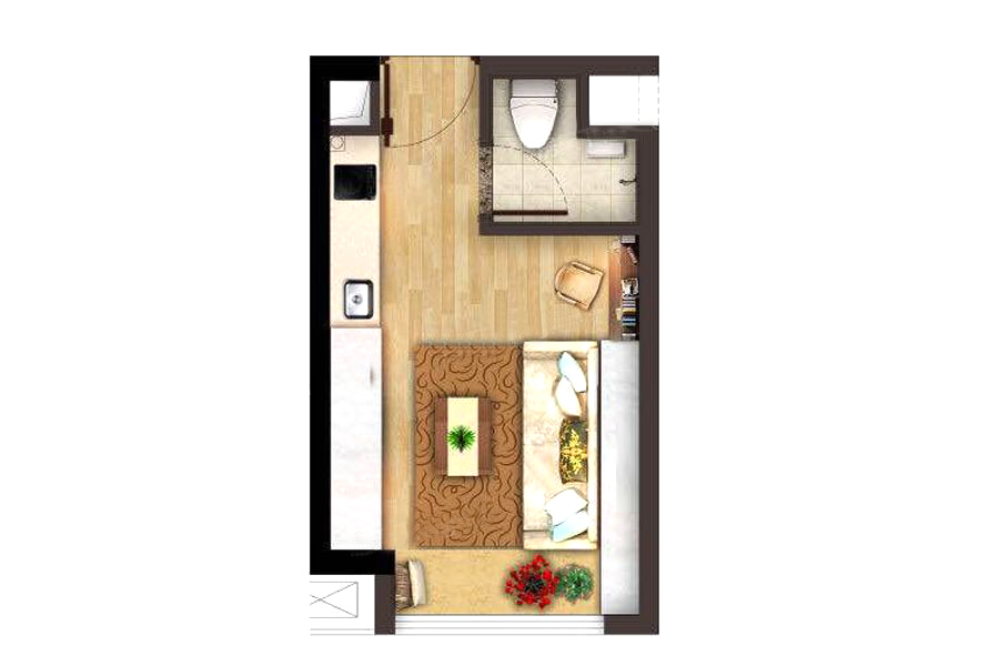 25平方米户型-1室0厅1卫1厨建筑面积25.00平米