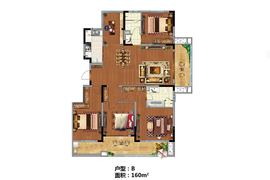B户型-5室2厅2卫1厨建筑面积160.00平米