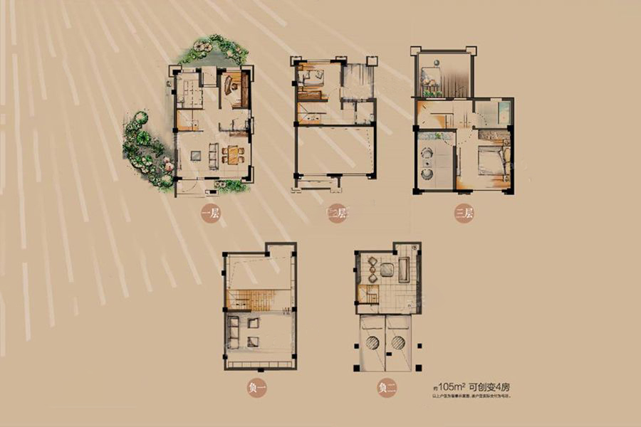 别墅89-105平-4室3厅2卫1厨建筑面积105.00平米