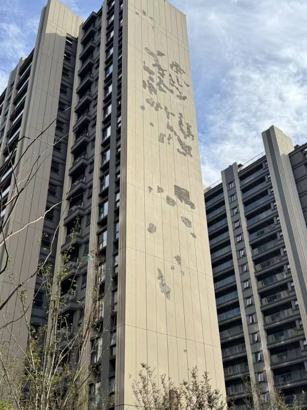 交付未满一年,外立面真石漆便大面积斑驳,金地西郊悦章小区如今出现的质量问题,与曾经“招保万金”的招牌形象越行越远。