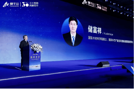 储富祥院士从“创新与责任”的双重视角中指出:“产品,是行业创新的最终载体;零碳,是未来发展的必由之路。”他高度评价云峰莫干山在推动家居产业高质量发展、积极践行“双碳”目标方面所付出的努力,并指出其发布的三大产品体系——定位高端的“莫干山·未见”系列、行业首个山系花色IP“中国山色”、以及具备自然疗愈功能的“植物源释香·茶香板”三大新品均跳出了传统板材的功能局限,实现了环保、美学与实用价值的三位一体,为全行业树立了崭新标杆。