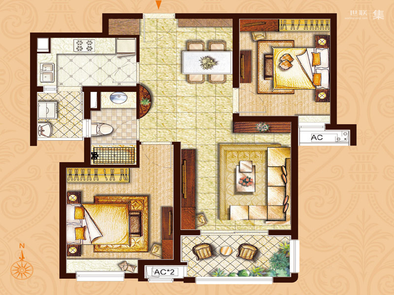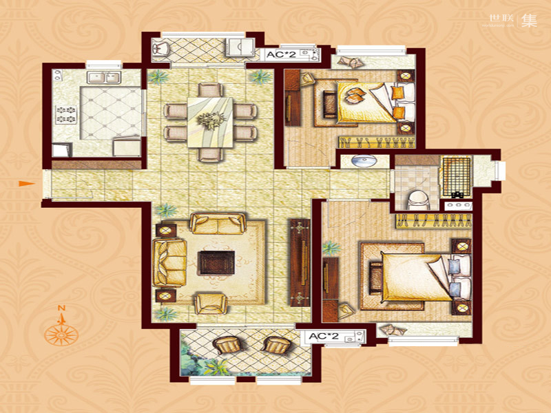 二居室(2)、 三居室(2)、 四居室(1)