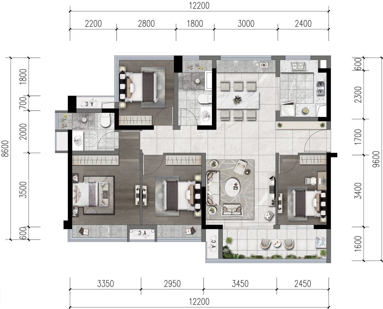 三居室(2)、 四居室(1)