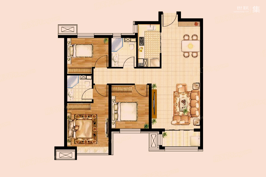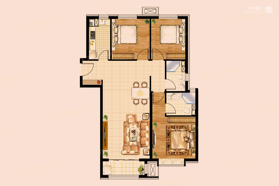 二居室(1)、 三居室(4)、 四居室(3)、