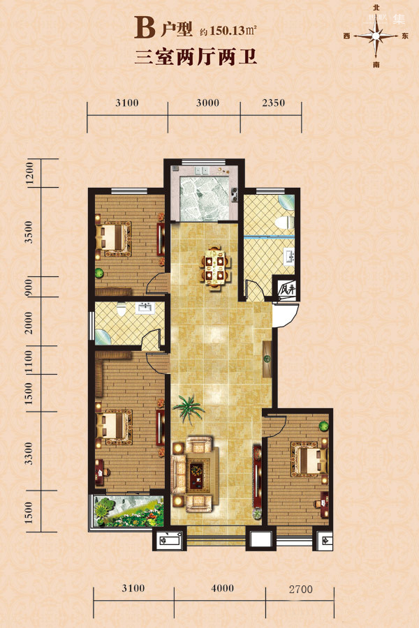 二居室(1)、 三居室(3)、 四居室(1)