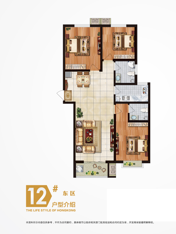 12#E户型-3室2厅2卫1厨建筑面积129.00平米