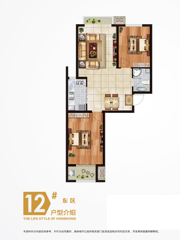 12#H户型-12#H户型-2室2厅1卫1厨建筑面积91.00平米