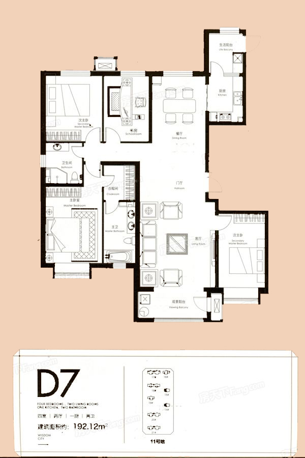 11号地D7户型-4室2厅2卫1厨建筑面积192.12平米
