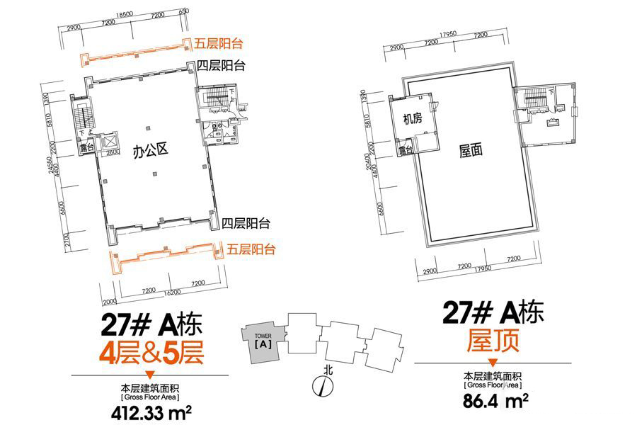 27#A栋四层、五层、屋顶户型-1室0厅0卫0厨建筑面积2406.55平米