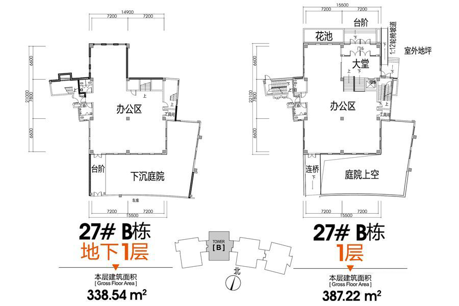 27#B栋负一层、一层户型-27#B栋负一层、一层户型-1室0厅0卫0厨建筑面积2376.92平米