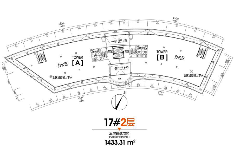 17#二层户型分布图-1室0厅0卫0厨建筑面积1433.31平米