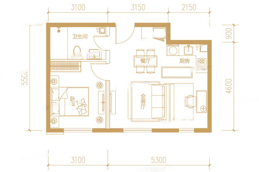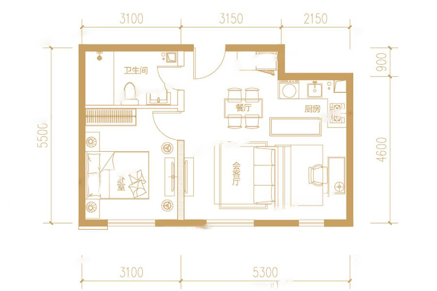 1室2厅1厨1卫