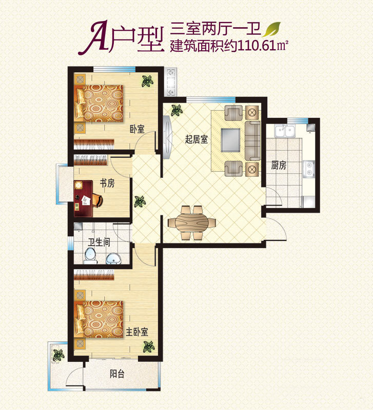 3#A户型-3室2厅1卫1厨建筑面积109.26平米