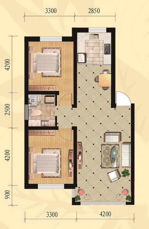 67.41平户型-2室2厅1卫1厨建筑面积67.41平米