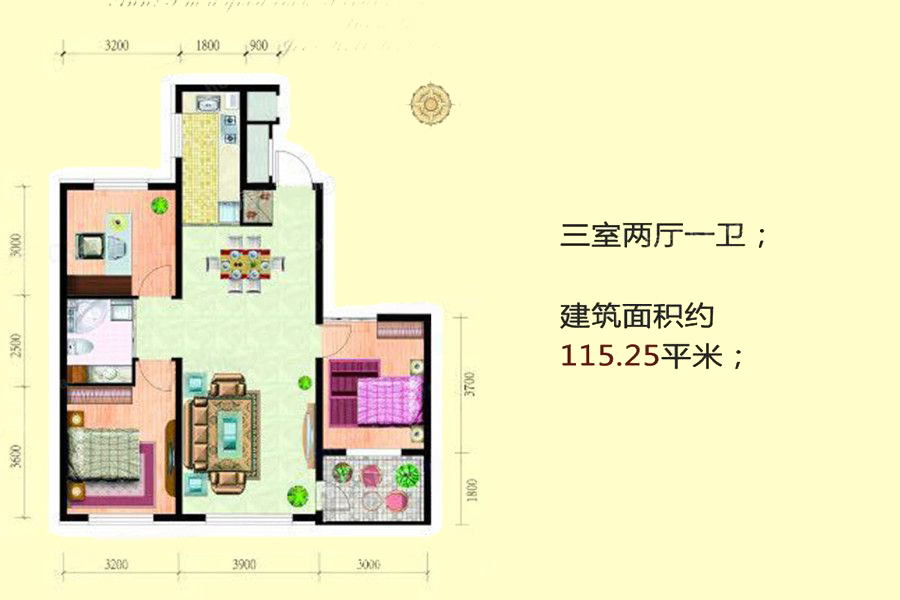 115.25平户型-3室2厅1卫1厨建筑面积115.25平米