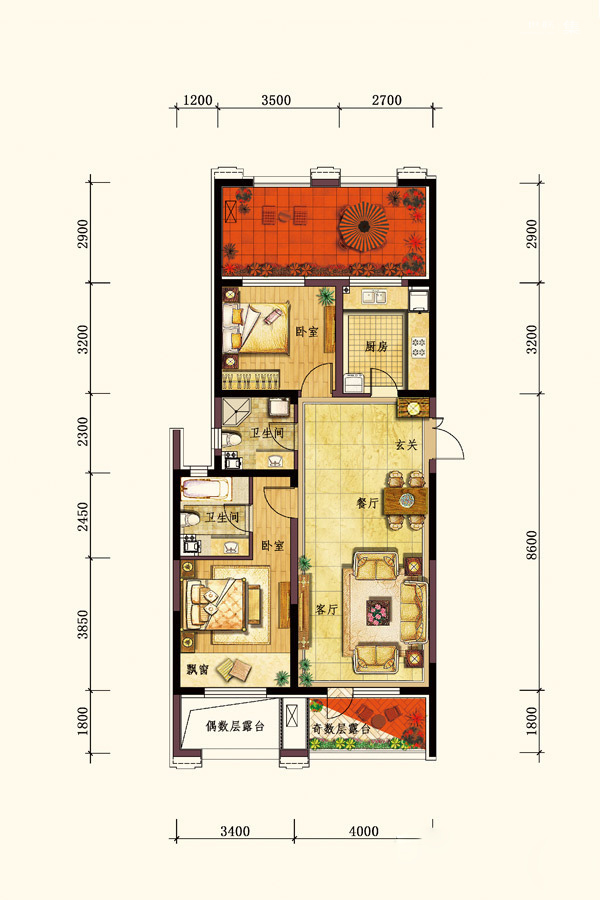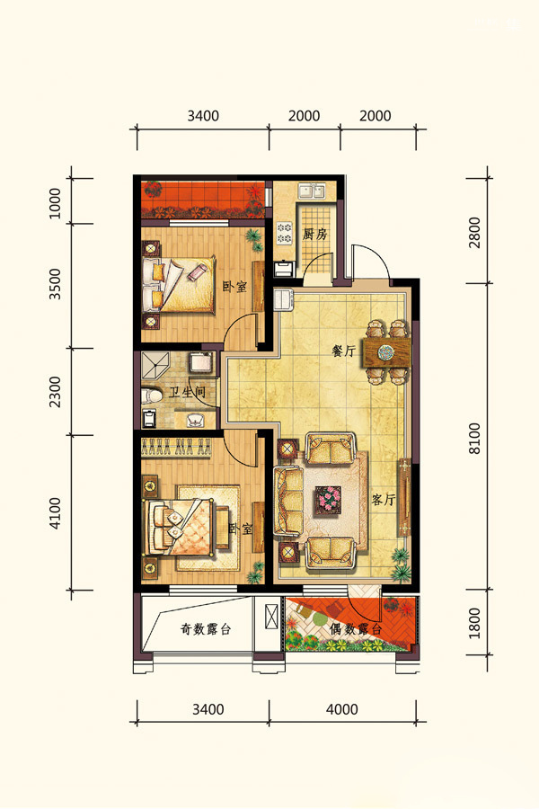 二居室(2)、 三居室(1)