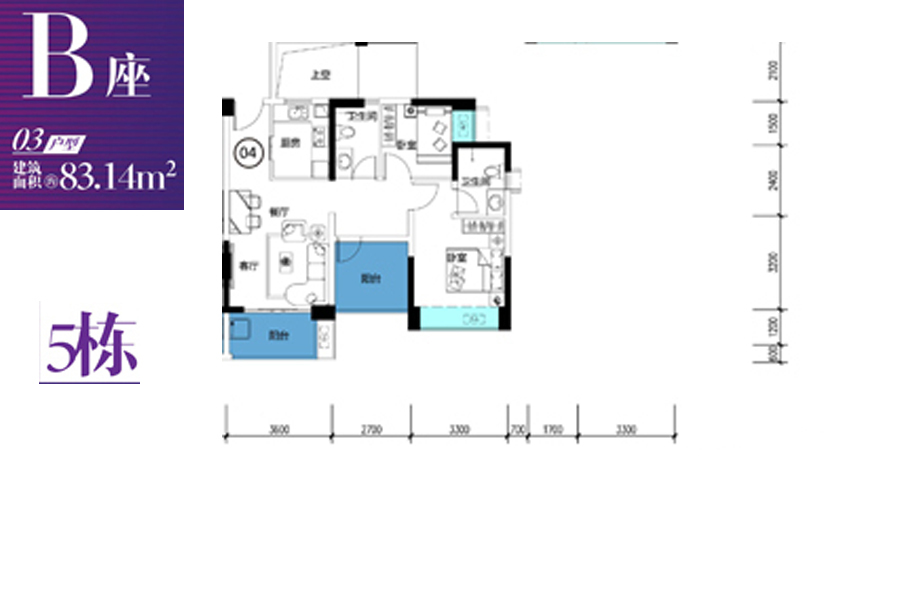 5#B03户型-2室2厅2卫1厨建筑面积83.00平米