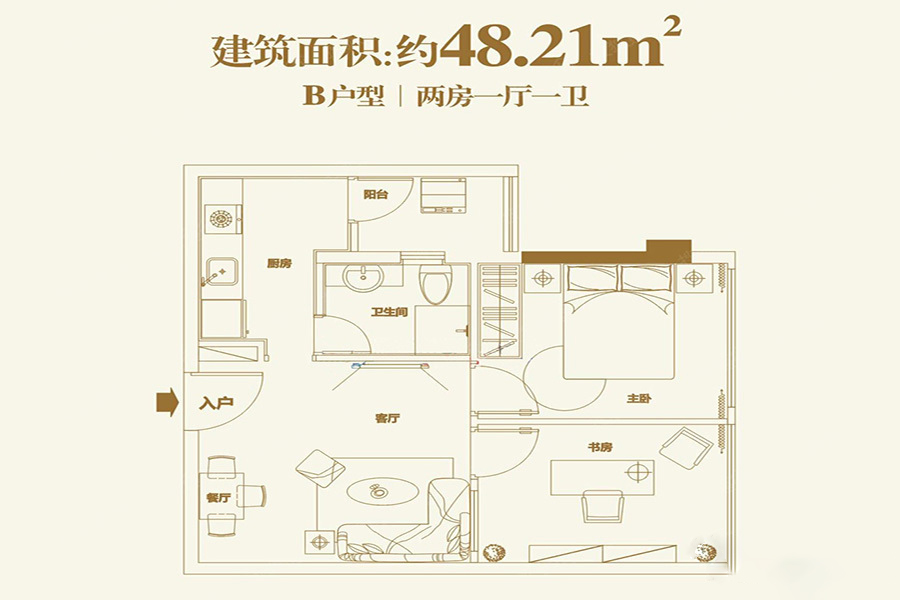 B户型-2室1厅1卫1厨建筑面积48.21平米