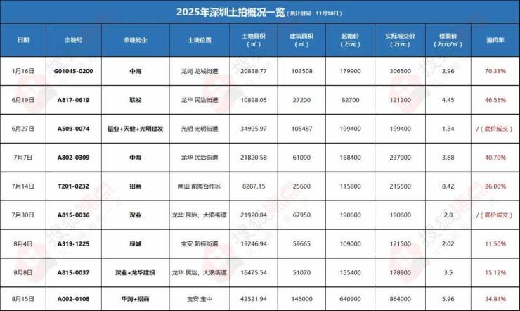 可以看到,今年深圳卖地成果还是不错的,前三个季度累计成交了9宗宅地,收金243.46亿元。