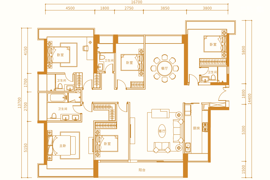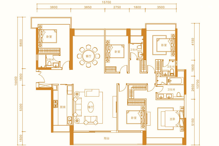 三居室(2)、 四居室(4)、 五居室(3)