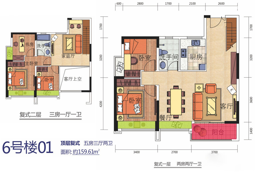 四居室(1)、 五居室(2)