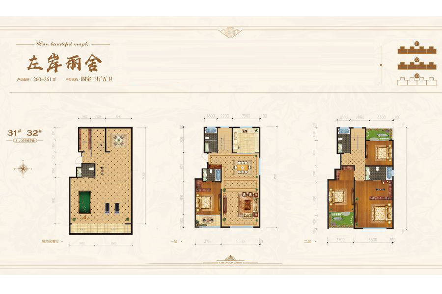 31、32号楼户型-4室3厅5卫1厨建筑面积260.00平米