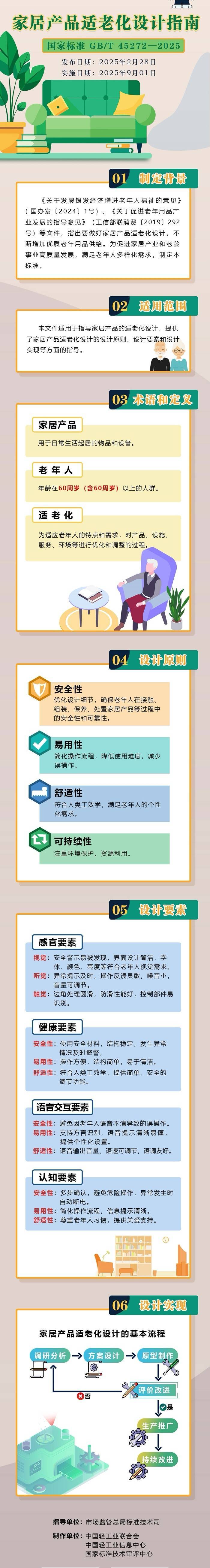 由市场监管总局(国家标准化管理委员会)批准发布的《家居产品适老化设计指南》(GB/T 45272—2025)国家标准,将于2025年9月1日正式实施。