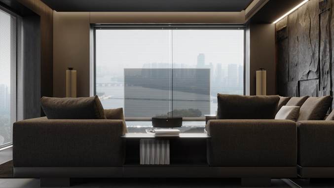 “有机奢华”设计哲学的完美体现,它将建筑的硬朗结构、艺术的抽象表达、自然的原始肌理与当代主义的极简线条融为一体,创造出一种既奢华又充满生命力的居住体验。