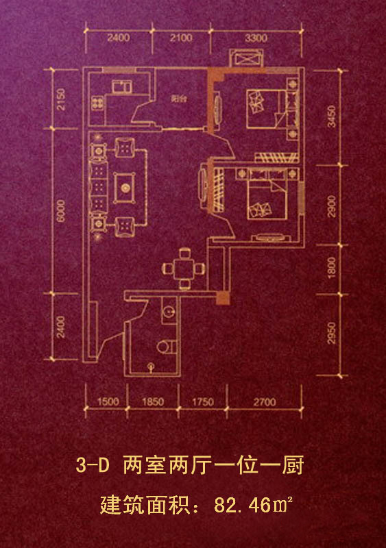 1户型3-D-2室2厅1卫1厨建筑面积82.46平米