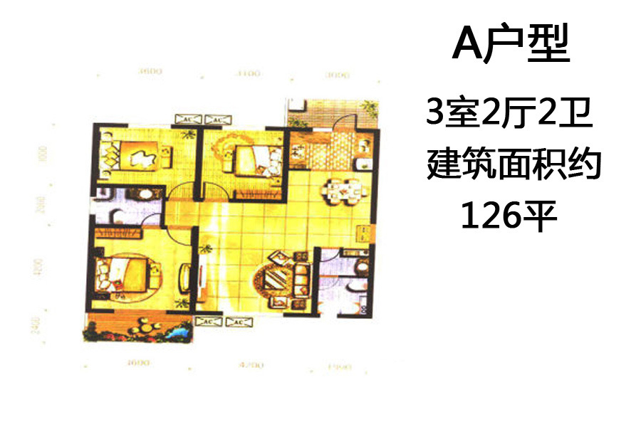1、5、6号楼A户型-3室2厅2卫1厨建筑面积126.00平米
