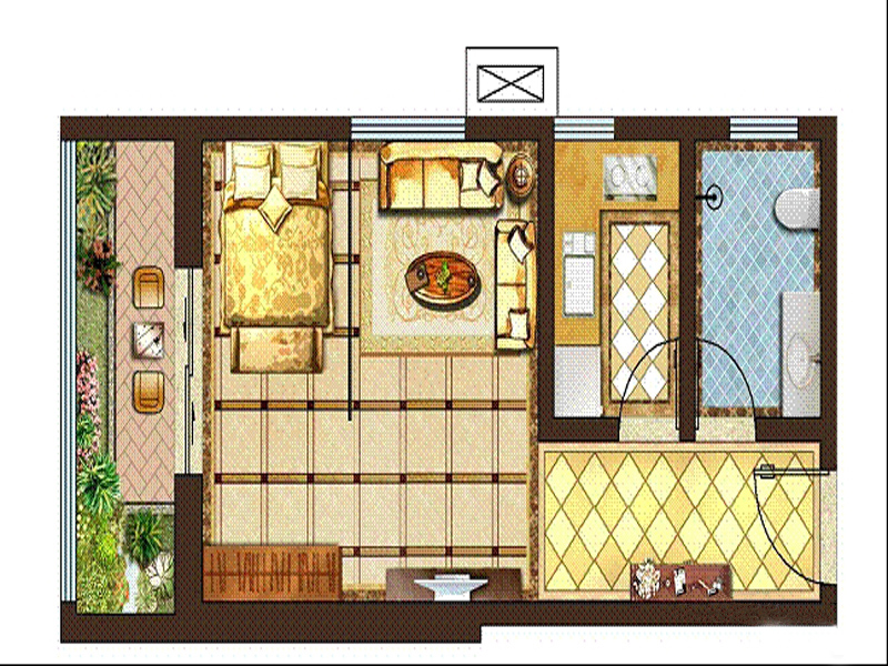 1号楼F户型-1室1厅1卫1厨建筑面积51.00平米
